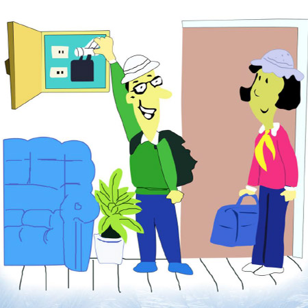 离家或睡觉前要检查用电器具是否断电,燃气阀门是否关闭,明火是否熄灭。
